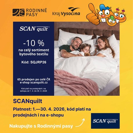 Naším partnerem v programu Rodinný pas je česká značka SCANquilt, která je na trhu již 35 let a stále přináší nové a zajímavé trendy nejen v bytovém textilu, ale i kvalitní a designové produkty pro vytvoření toho správného domova a atmosféry, kde si kvalitně odpočinete a zrelaxujete.