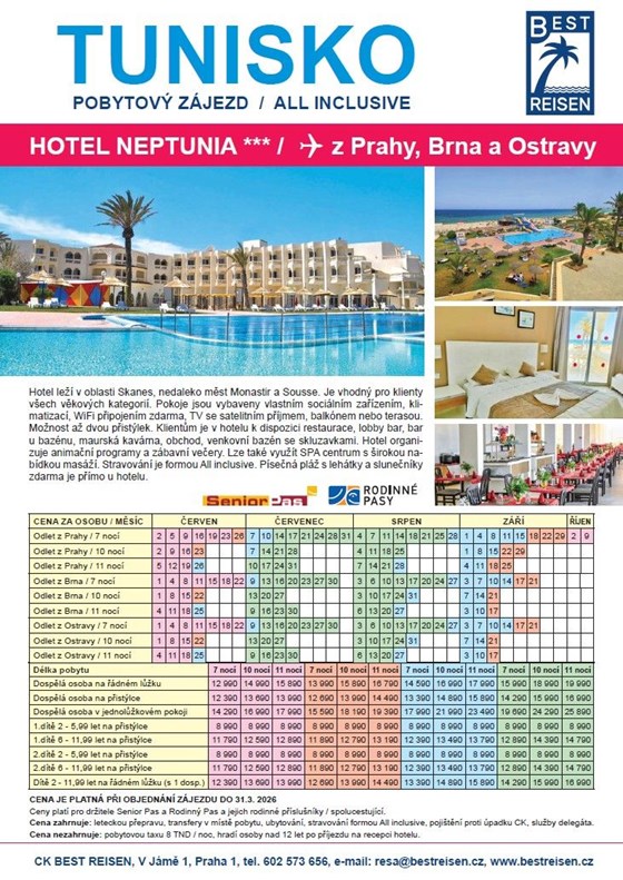 Cestovní kancelář Best Reisen si pro Vás připravila hned dvě další speciální nabídky zájezdů na rok 2024 a jako držitelé Rodinného pasu máte možnost jet za zvýhodněnou cenu!