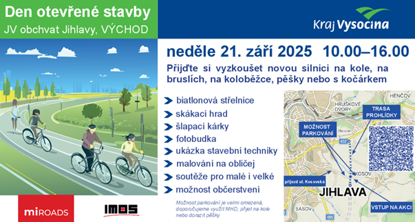 21. září máte jedinečnou možnost si projít nebo projet na kole nový jihovýchodní obchvat Jihlavy ještě před uvedením do provozu. A nezapomeňte vzít vnoučata, čeká tam na ně spousta aktivit.