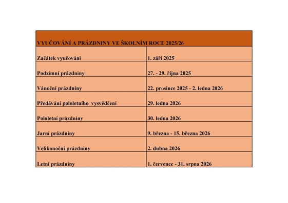PRÁZDNINY VAŠICH DĚTÍ PRO ŠKOLNÍ ROK 2025/26
