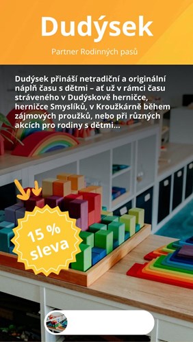V projektu Rodinné pasy pro vás neustále rozšiřujeme nabídku slev a výhod. Aby vám nic neuniklo, každý den přidáváme na náš Instagram Stories nových poskytovatelů slev, kteří se do projektu zapojili.